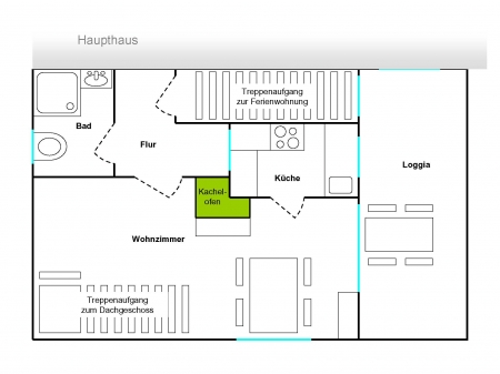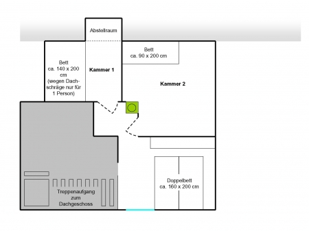 Diese Grundrisse sollen Ihnen einen ersten Eindruck der Wohnung vermitteln; sie sind nicht vollkommen maßstabsgetreu. Auch hat sich eine Änderung ergeben: Das Doppelbett ist nun 140 cm breit.